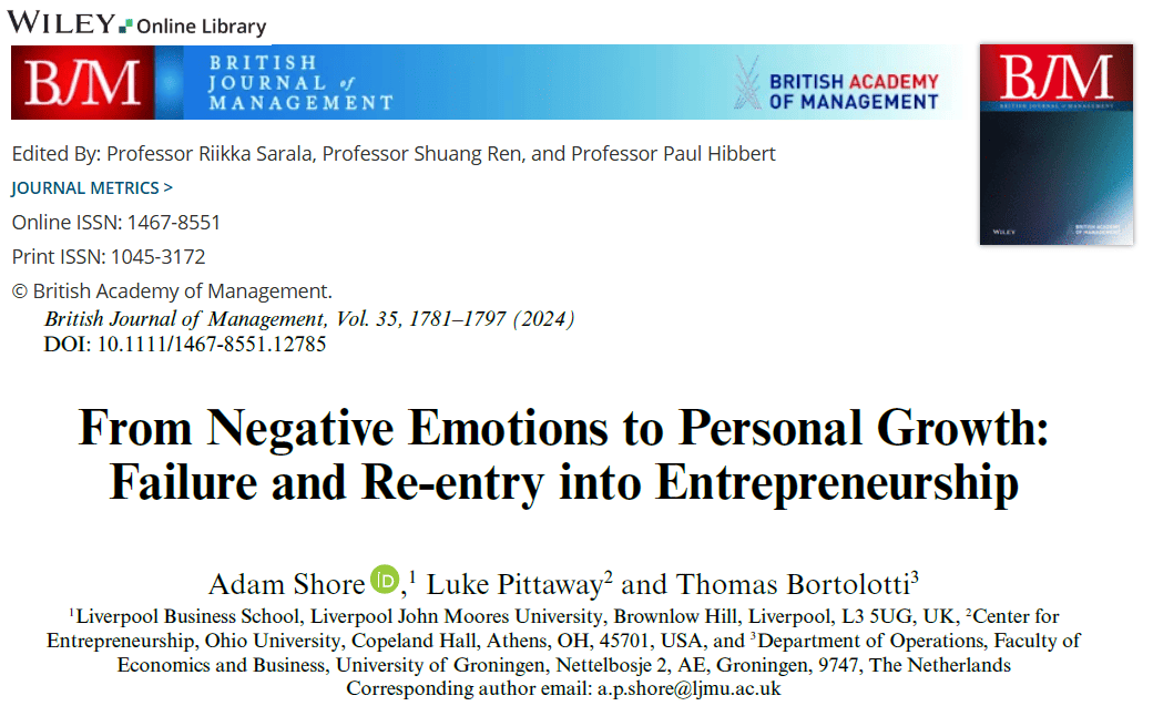 Today, we are excited to analyse the article "From Negative Emotions to Personal Growth: Failure and Re-entry into Entrepreneurship" published in the British